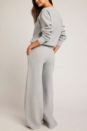 A high-waist. wide-legged track pant in luxuriously cozy waffle knit fabric.